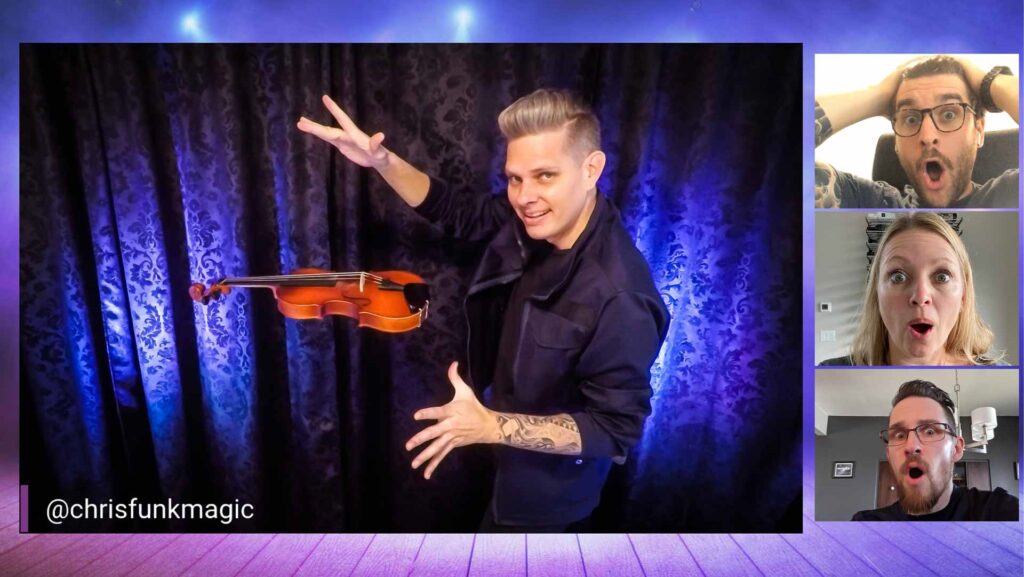 Chris Funk’s show Wonders on the Web is an engaging and interactive streaming experience with multiple cameras, live video callers/chats and awesome production quality. Streaming out of Chris Funk’s live production studio, your guests will feel fully immersed in the experience. Chris’ show, “WOW”, is in a league of its own with a highly interactive platform so everyone can feel like they’re at a live show! Whether it’s a closeup trick or one of his famed stage tricks, you’ll see everything vividly and you’ll want to learn it too! Chris let’s you in on the fun and teaches you two tricks that you can perform for your family and friends! He also sticks around for a Q&A for you to learn all about him and his globe-trotting career!